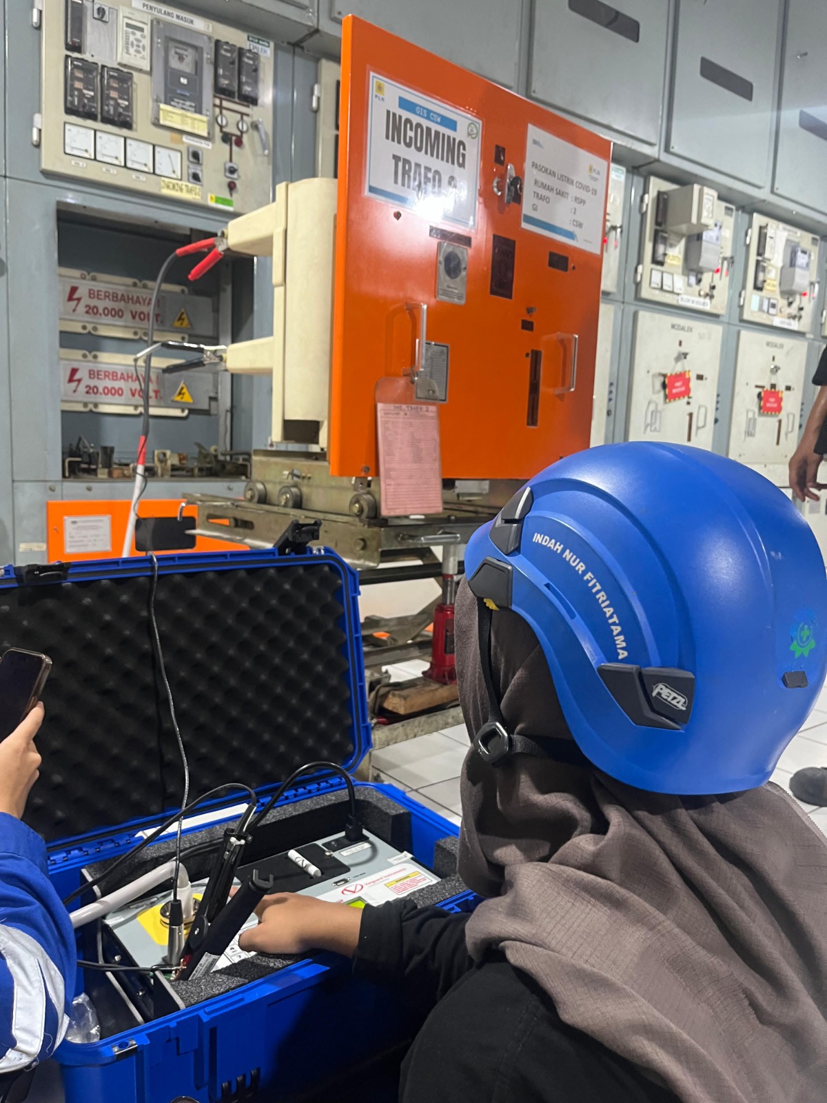 Safety briefing sebelum pekerjaan pemeliharaan material transmisi utama di GIS 150kV CSW, Jakarta